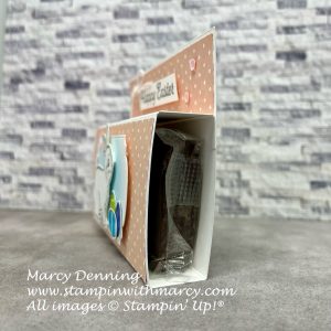 - I added some pink sequins from the Pastel Sequins (also retiring) and a white Baker’s Twine to finish off the box