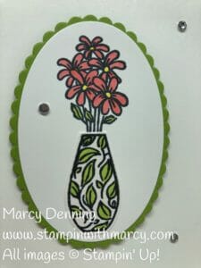 The Vibrant Vases stamp set coordinates with the Vases Builder Punch, #147040, page 212 of the Annual Catalogue.