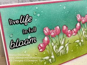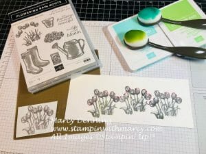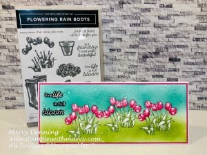 Today I have another pretty card for you that uses the Flowering Rain Boots stamp set, I am loving this pretty bundle that can be found on page 30 of the Stampin’ Up! Mini Catalogue!